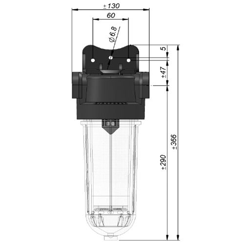 - Einfache und bequeme Entleerung (Ablasskugelhahn am Boden des Gehäuses).