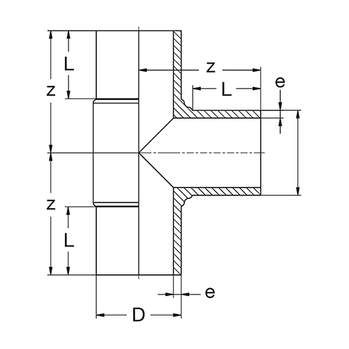 Außendurchmesser und Wanddicke entsprechend EN 1555 und EN 12201. Toleranzen bei den Z-Maßangaben sind abhängig von der Dimension. Bis d/D 160 = +/- 3 mm. Ab d/D 180 = +/- 10 mm.