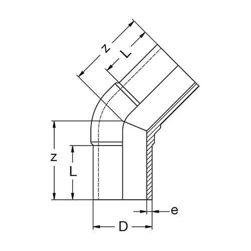 Außendurchmesser und Wanddicke entsprechend EN 1555 und EN 12201. Toleranzen bei den Z-Maßangaben sind abhängig von der Dimension. Bis d/D 160 = +/- 3 mm. Ab d/D 180 = +/- 10 mm.